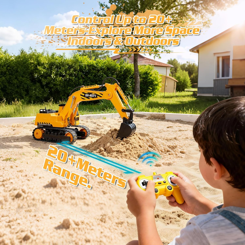 ??Full Functions, More Fun?This digger toy goes forward/backward, turn left/right, digs and moves loose sand, rotates in situ and cab turns 350-degree (175-degree eachdirection). lt has sold over 50.000 units, Remote control excavator bring you high quality and fun.