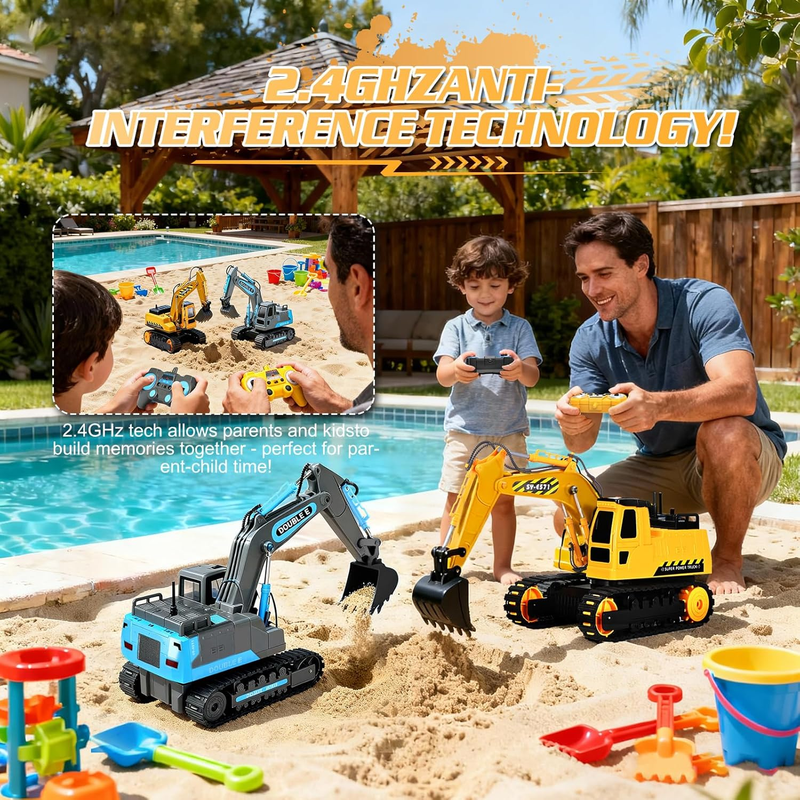 - Remote Control Excavator Toy 2 Batteries RC Excavators Sandbox Digger Hydraulic
