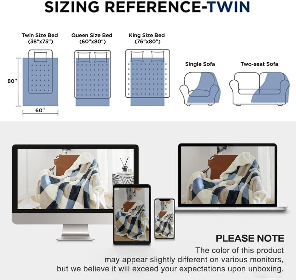 - Reversible Sherpa Fleece Throw Blanket 60" x 80" for Sofa and Bed
