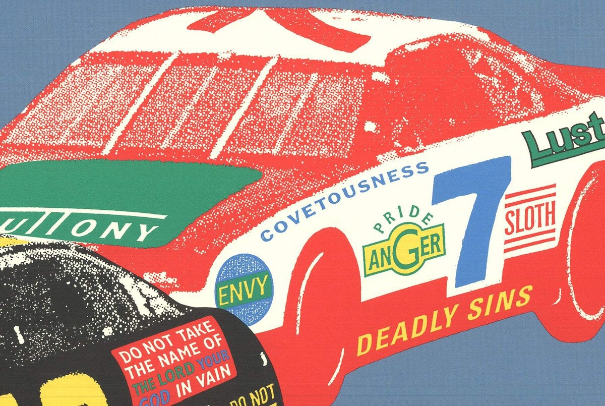 Sku: YY4036Artist: Seymour ChwastTitle: Cars VIIIYear: 1996Signed: NoMedium: Offset LithographPaper Size: 12 x 19 inches ( 30 x 48 cm )Image Size: 12 x 19 inches ( 30 x 48 cm )Edition Size: UnknownFramed: No: Inquire with our experts for framing suggestions.Condition: A-: Near Mint, very light signs of handlingAdditional Details: July page of Seymour Chwast's 'Cars' spiral bound calendar published by The Pushpin Group in 1996. Printed by Berman Printing Co.