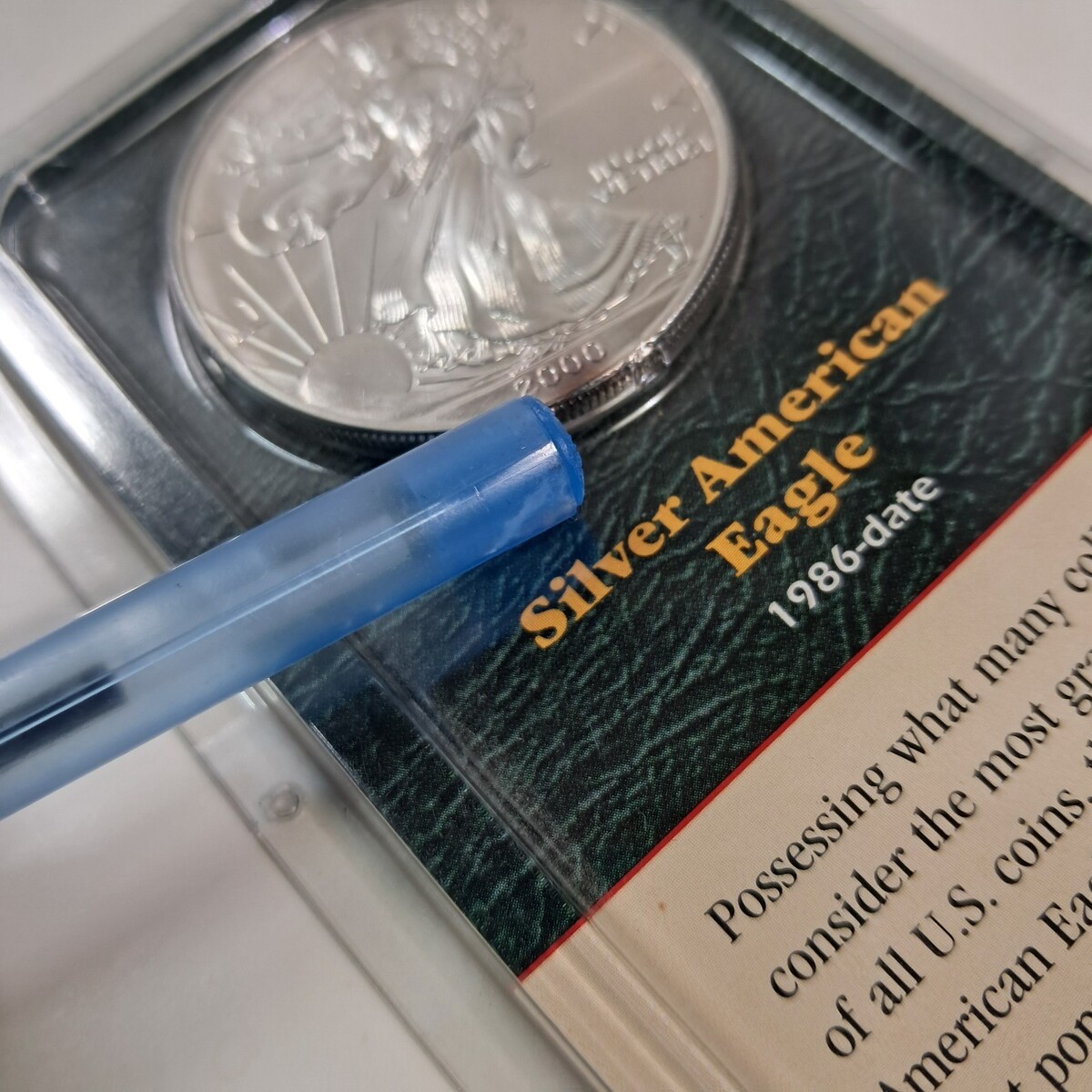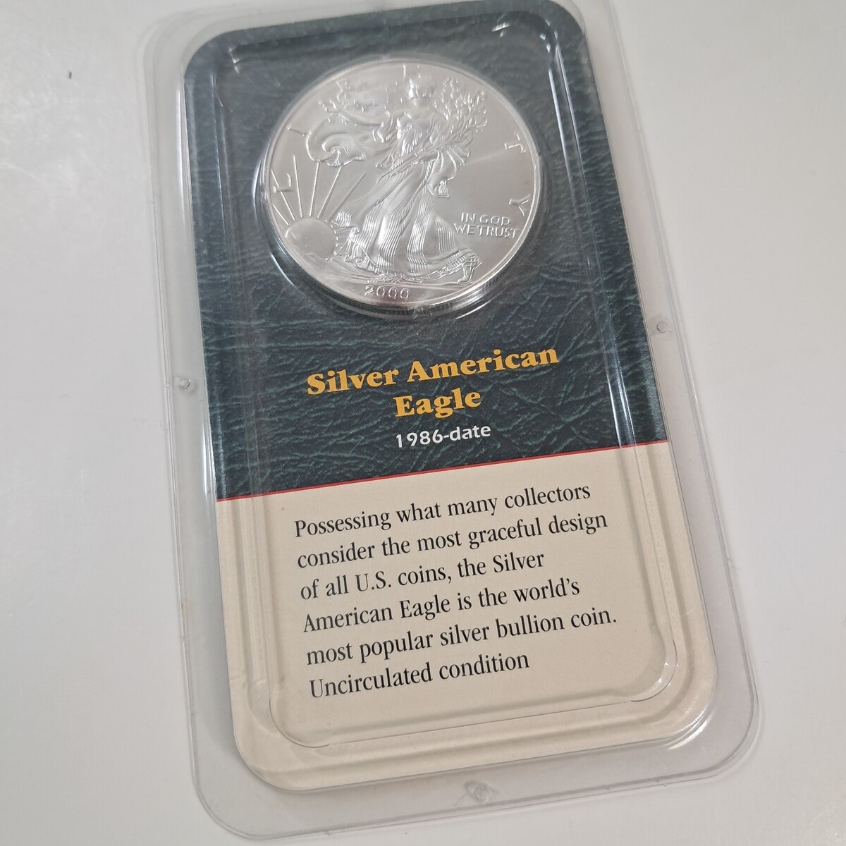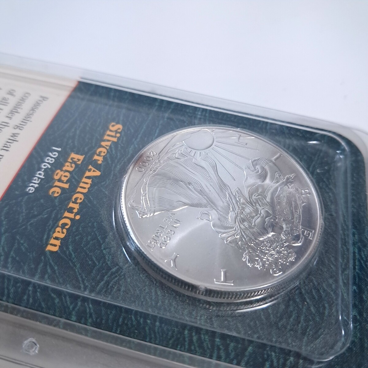 Silver American Eagle Coin 2000 Uncirculated Littleton company RAINBOW toning In Littleton Company holder. Has rainbow toning around the edges at the back and a bit on the front bottom. See pics.