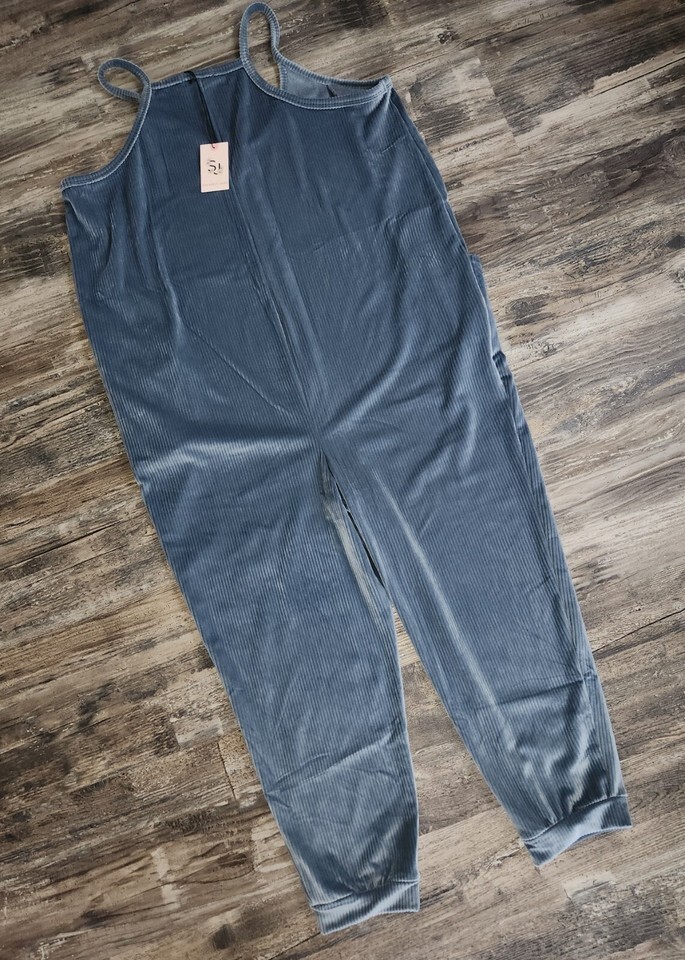Boho Blue soft corduroy velour slouchy jumpsuit