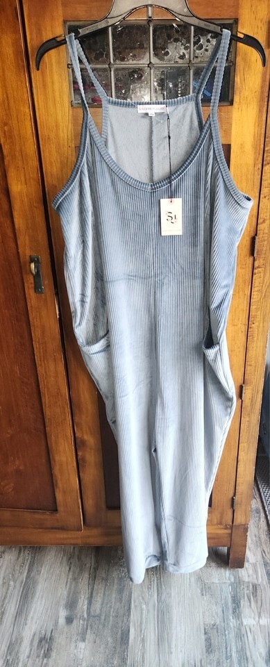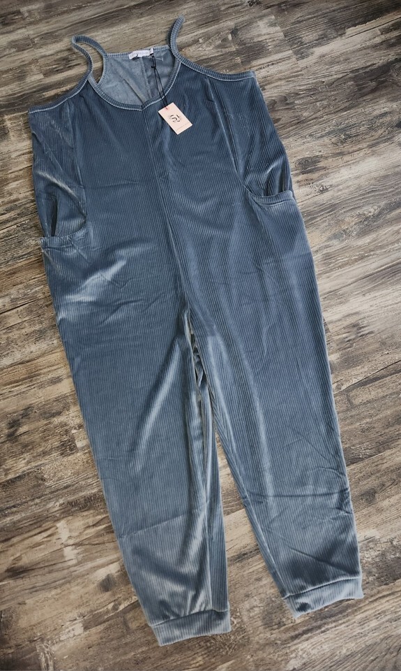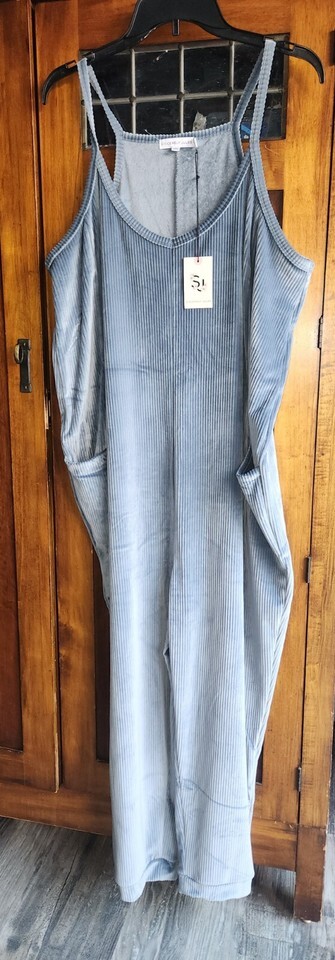 Sincerely Jules XL Slouchy Jumpsuit Blue Soft Cozy Ribbed Velour NEW