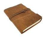 Soft leather cover and about 96 pages (192 counting front and back) with a leather cord for closure. The book measures approximately 5 inches by 7 inches - extremely charming!
