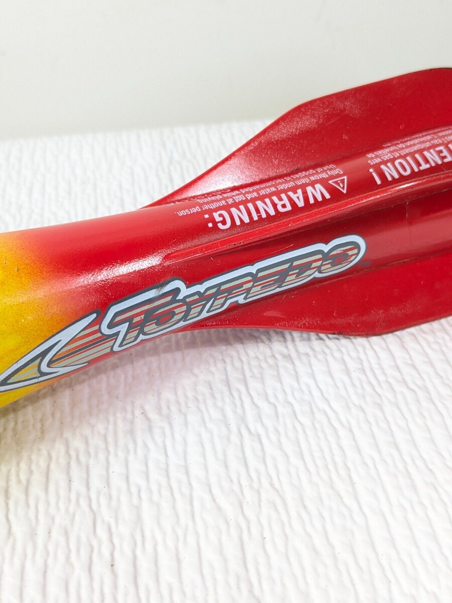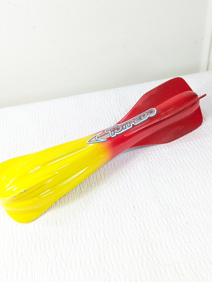 SwimWays Toypedo 25th Anniversary Pool Toy red yellow 2018 Hydrodynamic torpedo Some paint wear/scuffs/scratches from use. See pics for details measurements.