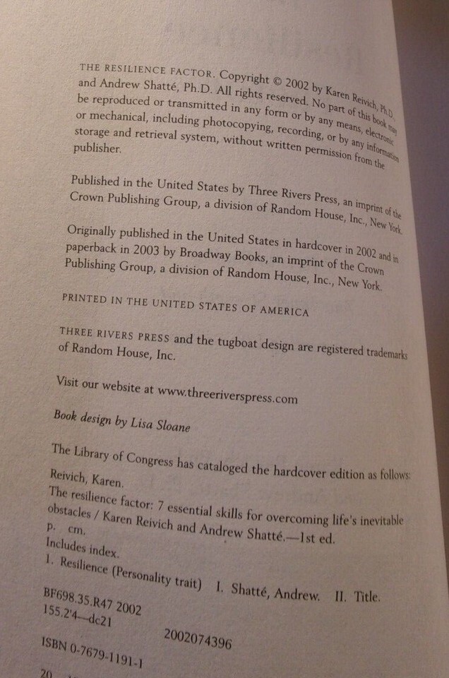 THE RESILIENCE FACTOR BY KAREN REIVICH, PH.D. ANDREW SHATTE PH.D. PAPERBACK BOOK