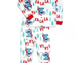 The pajama set features a fun and colorful print with Stitch dressed in his Santa hat surrounded by Christmas trees and snowflakes.