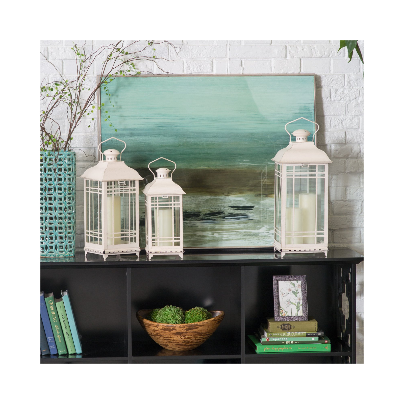 Enhance your home with the timeless elegance of this Traditional Ivory Metal Lantern Set. Featuring a classic metal frame with a whitewashed finish, these lanterns add a charming glow to any space. Their sturdy metal and glass construction ensures durability, making them perfect for everyday decor or seasonal accents. Display them indoors or on a covered outdoor patio, and add real wax or LED candles for a warm, inviting ambiance. Whether styled alone or with floral arrangements, this set is a must-have for any decor enthusiast. Sold in a collection of three assorted sizes to create a balanced and versatile display in your home.