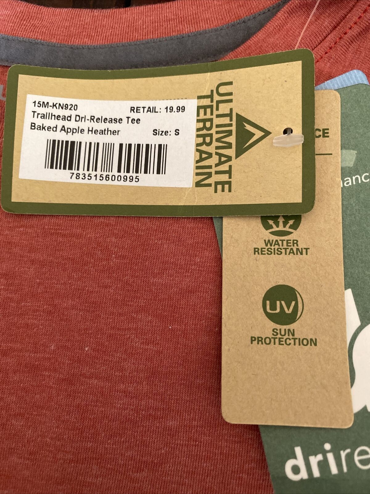 - Ultimate Terrain mens S red baked apple heather tshirt