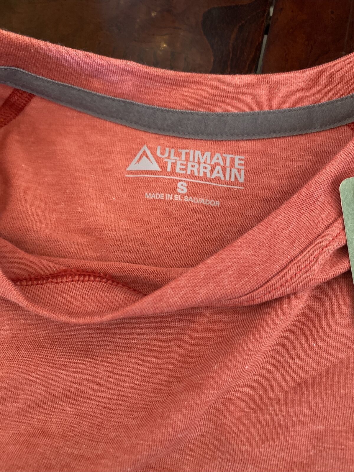 Ultimate Terrain mens S red baked apple heather tshirt.