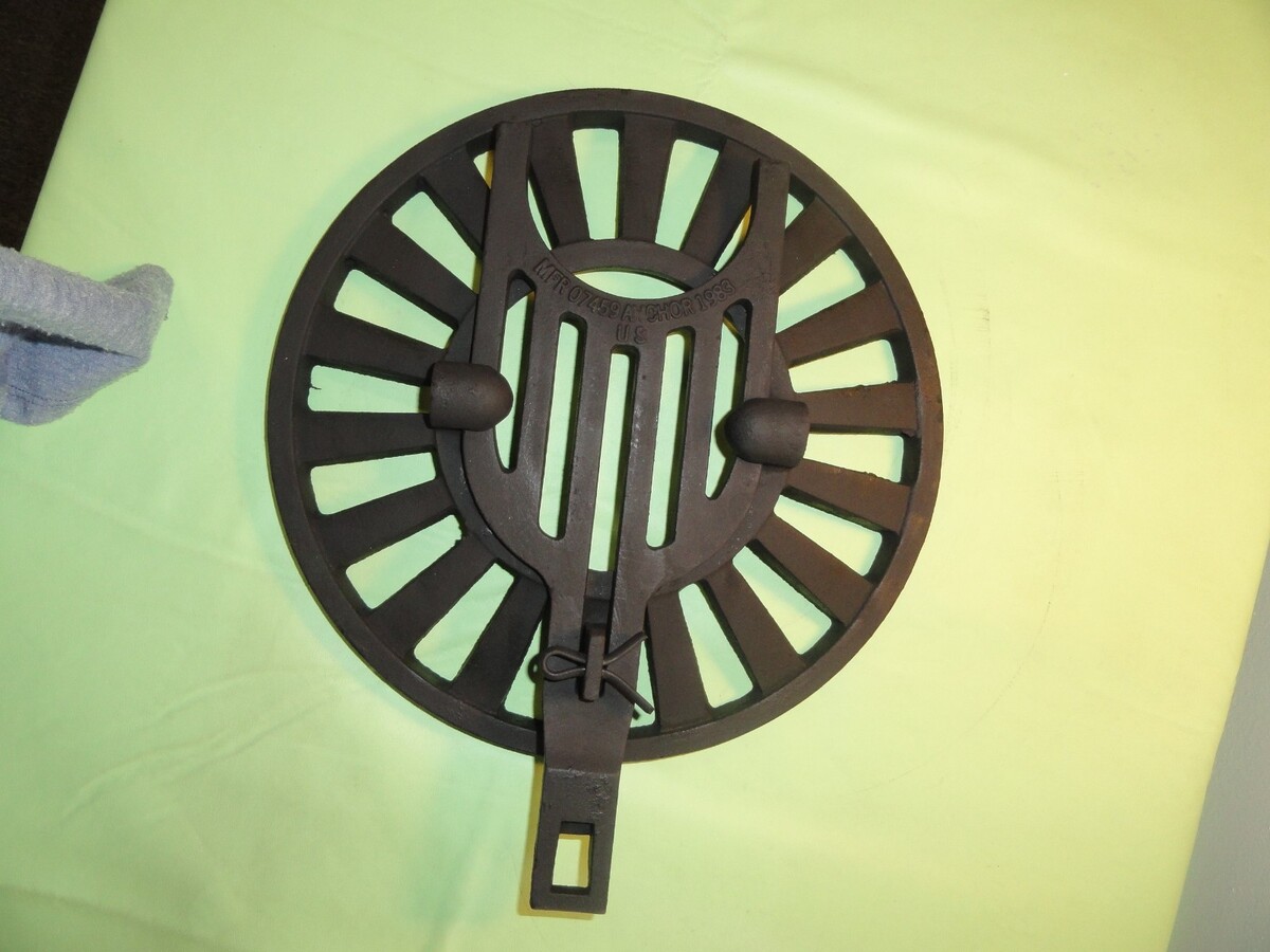 US Military M-1941 CAST IRON TENT STOVE OPEN FIRE ROUND & DRAW GRATE WITH HANDLE