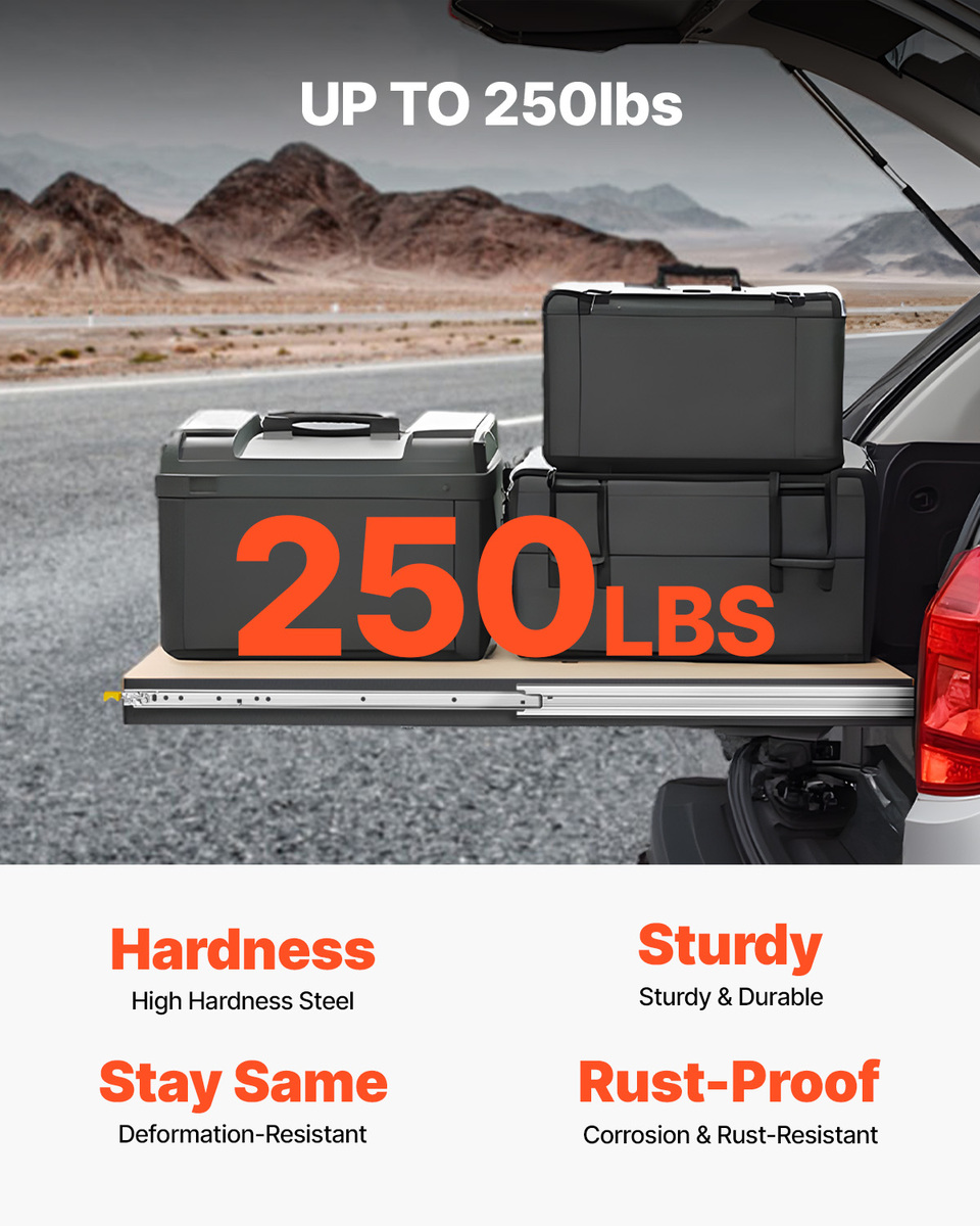 250lbs Heavy-Duty: Made of 0.77 in/19.5 mm thick high hardness steel, the heavy duty drawer slides have a weight capacity of up to 250 lbs. The galvanized finish makes the telescoping drawer slides rust and wear-resistant for long-time use. It can be used in shelving, cabinets, industrial drawers, RVs, trucks, vending machines and more.