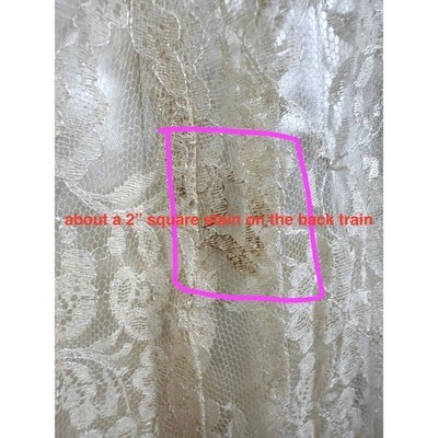 - VTG 40s Hess Ivory Skinner Satin Wedding Gown Lace Illusion Yoke Train XS