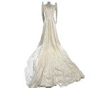 VTG 40s Hess Ivory Skinner Satin Wedding Gown Lace Illusion Yoke Train XS
