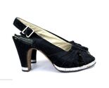 Vintage WW2 1940s black satin peep toe slingback with silver