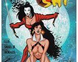 Description: Original cover price: $2.95. Direct edition. Cover Art by Adam Hughes; Written by Warren Ellis; Art by Louis Small, Jr; Inks by Mark Morales. Vampirella is tracking a vampire couple, but finds that someone has beaten her to the kill and the female is decapitated. Tracking the male to his house, Vampirella is confronted by Shi (who killed the female vampire). The male vampire returns home and attacks Vampirella, as a group of Yakuza attack Shi, but, are easily defeated. Shi and Vampirella argue over the male vampire whom Shi does not want to kill as she has no argument with him. After a cat fight with Shi, Vampirella manages to kill the vampire and leaves. 32 pages, Full Color. 110825-110825T