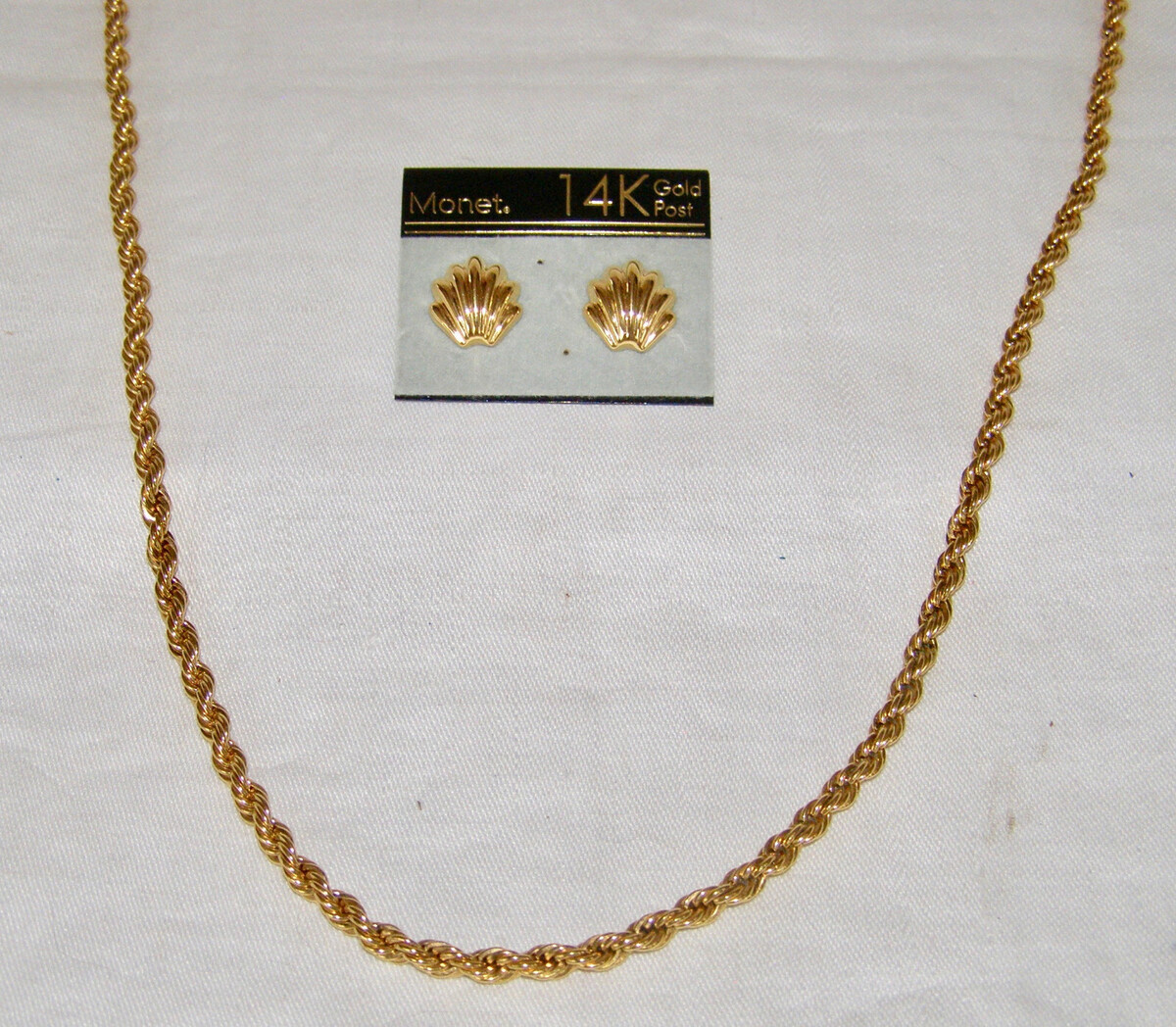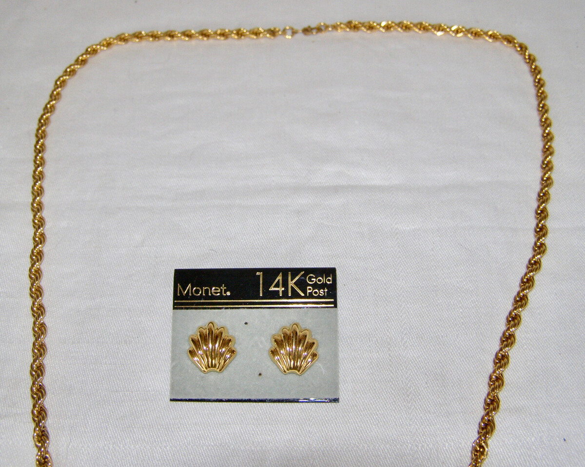 Earrings/ROPE CHAIN NECKLACE + FAN SHAPED SHELL EARRINGS |