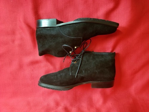 - Vintage 90s Joan & David Black Suede Lace Up Minimalist Ankle Boots Size 37 Or 7