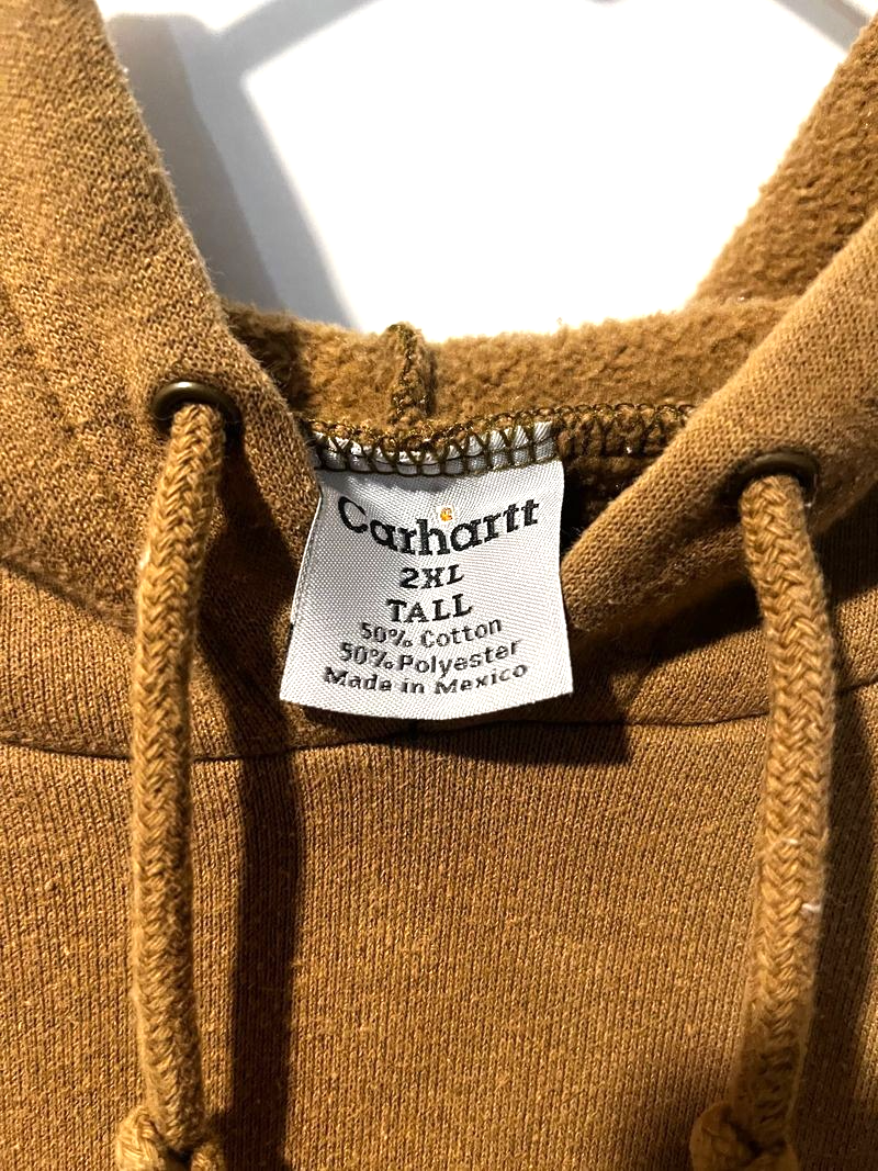 Vintage Carhartt Brown Pullover Hoodie Sweatshirt 2XL Tall Kangaroo Pocket