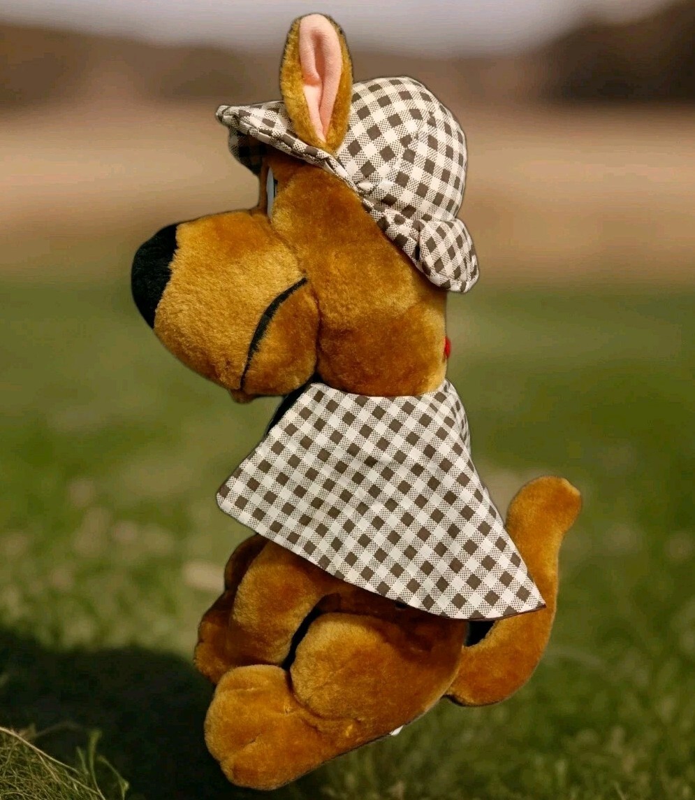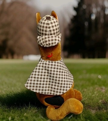 This Vintage Cartoon Network Scooby Doo Sherlock Holmes Detective Plush Stuffed Toy is a small brown stuffed animal featuring the beloved characters from Scooby-Doo.