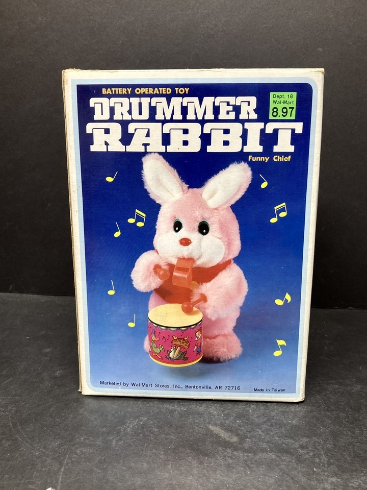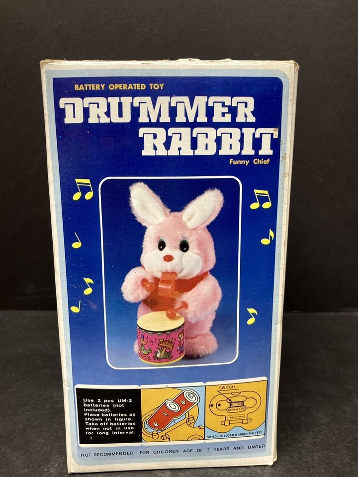 Vintage Drummer Rabbit Battery Operated Toy Funny Chief W/ Box Not Working