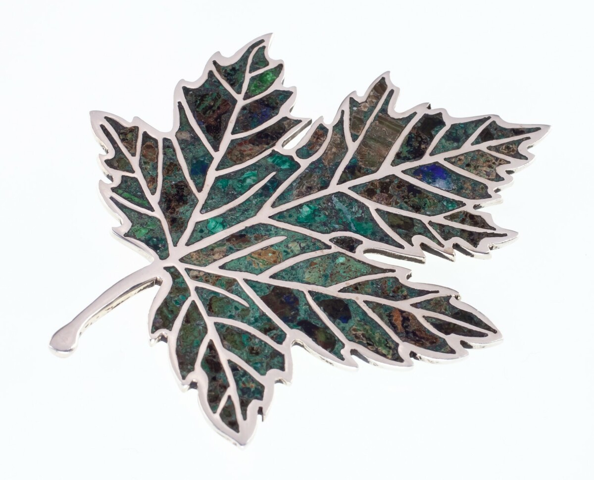 - Vintage Mexican Sterling Silver Leaf Brooch with Turquoise Inlay