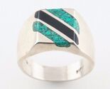 Vintage Mexican Sterling Silver Ring w/ Inlay Turquoise Black Enamel (Size 8)