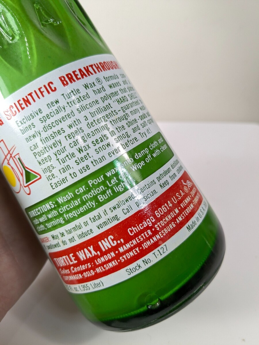 Vintage Turtle Wax High Gloss Car Glass Bottle T-127 12 Fl. Oz car auto green