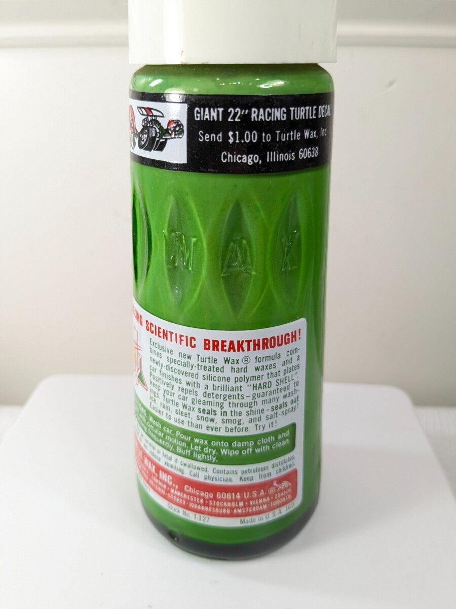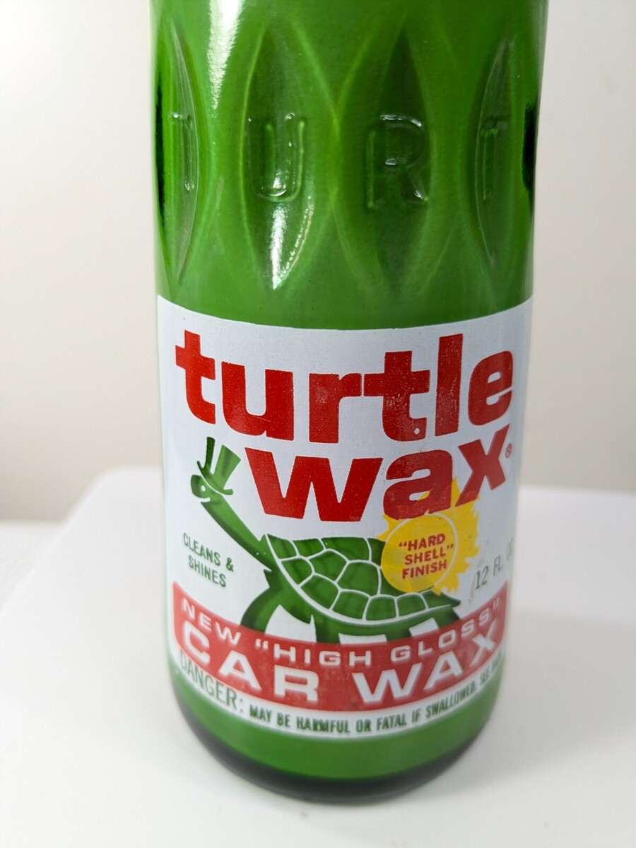 Vintage Turtle Wax High Gloss Car Glass Bottle T-127 12 Fl. Oz car auto green Partially used. See photos for amount left. Bottle has some wear and yellowing to the cap. See pics.