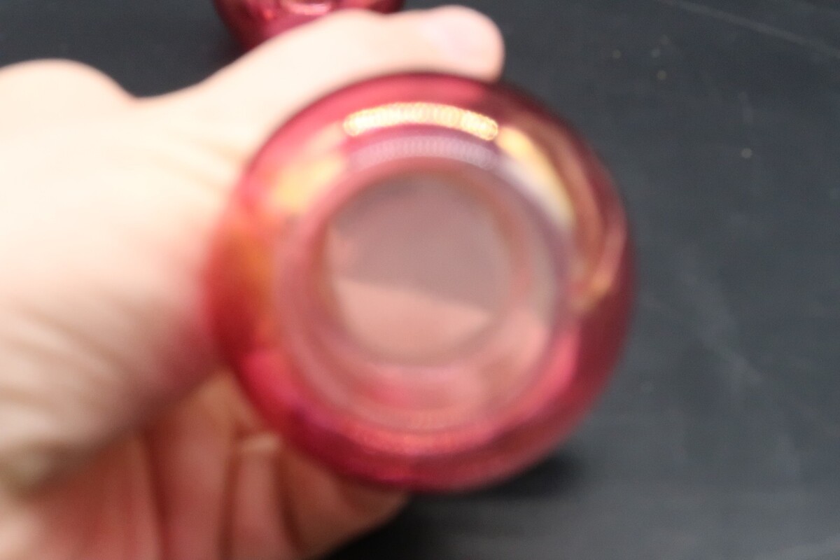 Vtg MCM Pair Bohemian Cranberry Glass Gold Striped Vases Bartlett Collins Style