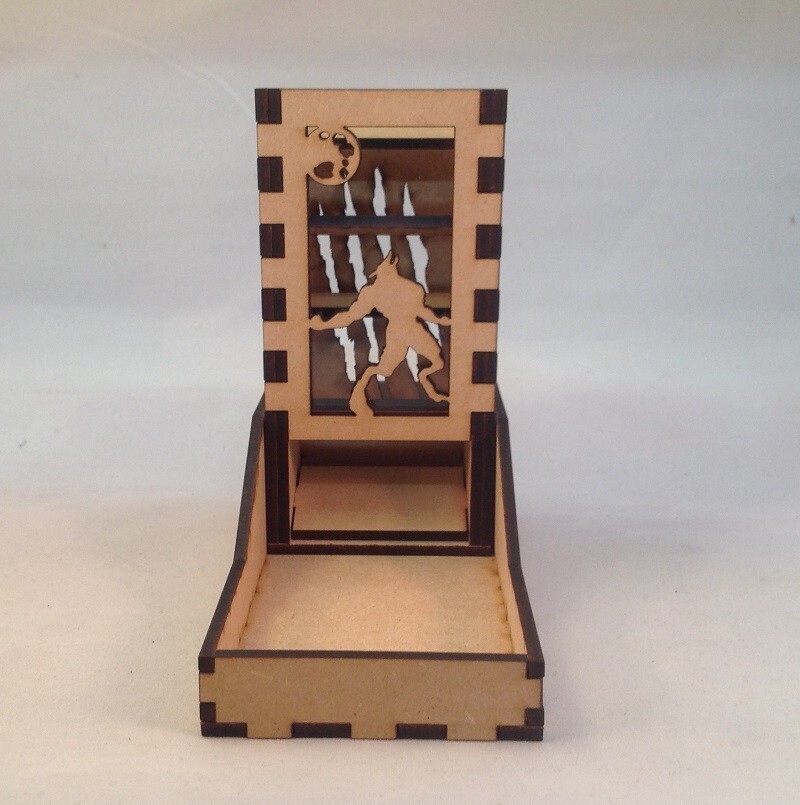 - Werewolf Dice Tower and Tray Clear Acrylic Window COMPACT DESIGN Laser Cut MDF
