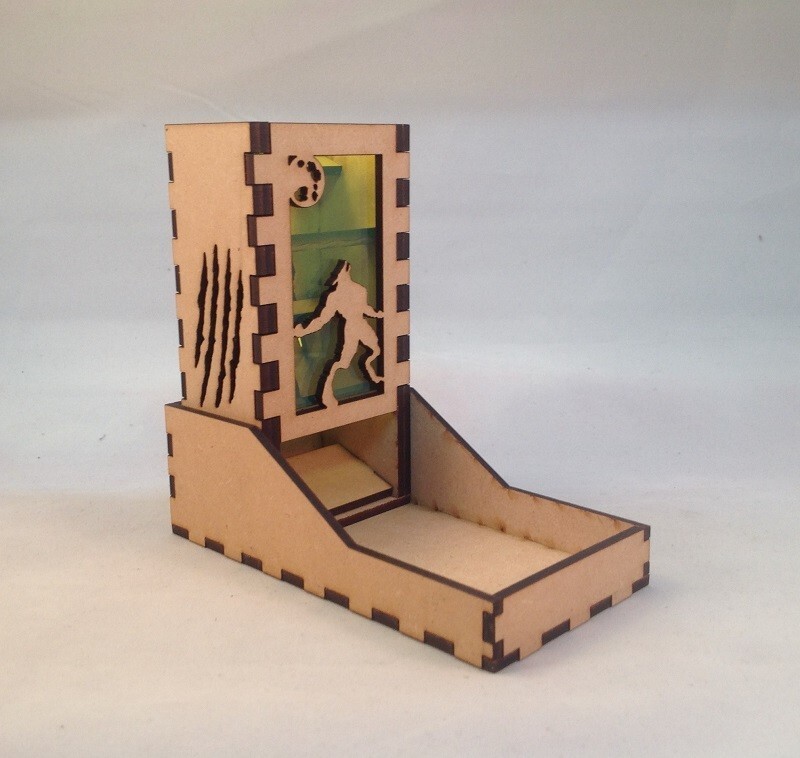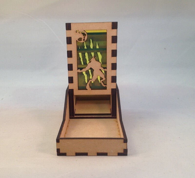 - Werewolf Dice Tower and Tray Neon Yellow Acrylic Window COMPACT DESIGN Laser Cut