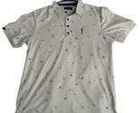 The William Murray Shirt for men in size Medium is a polo shirt designed for golf performance. Made from a blend of polyester and spandex, this short sleeve shirt features a collared neckline with a button closure, making it perfect for activewear or casual occasions. The shirt has a geometric pattern and logo accents, with stretch and moisture-wicking features for added comfort and functionality. Ideal for summer and spring seasons, this regular fit polo from William Murray is machine washable and a great choice for sports enthusiasts.