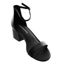 Spare block-heel sandal featuring slim ankle strap with buckle closure