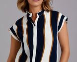 Women Top Unbranded Women V-Neck Short Sleeve Top Size L Blue/Brown/White