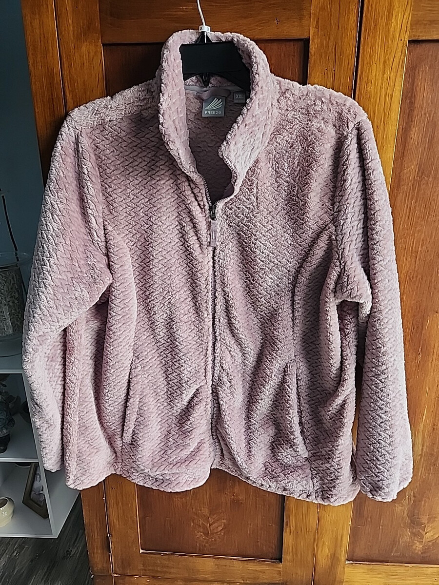 - Women's Free 2B XXL Faux Fur Jacket Full Zip Pink Blush Pile Fleece Collar NEW