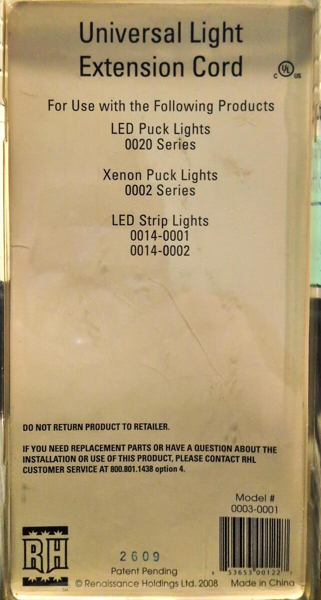 - Zilotek 12 Universal Light Extension Cord for LED Puck Lights 0003-0001